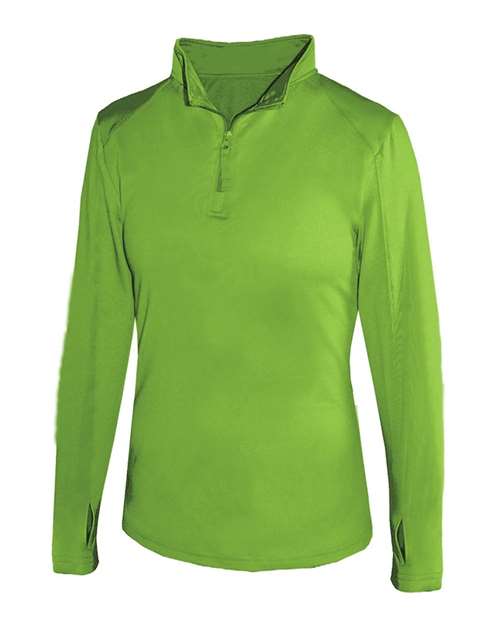 6 oz /yd² 94/6 polyester/spandex moisture management/antimicrobial properties Self fabric collar with 7" locking zipper Badger sport paneled shoulder for maximum movement Paneled sleeves Thumbhole on cuffs Open bottom Embroidered Badger logo on left sleeve div div span style text decoration underline strong This product meets the following Sustainable Style subcategory /strong /span /div div div br /div div Socially Conscious Manufacturing This product was made in a facility that has partnered with or is accredited by the Fair Labor Association /div /div /div p br /p