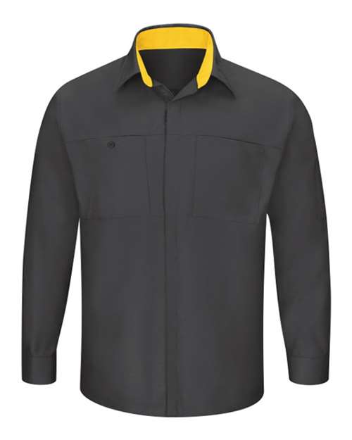 Body 4 25 oz /yd² 65/35 polyester/cotton Ripstop  Stretch Panels 3.8 oz /yd² 100% Polyester Stretch Knit Touchtex technology for breathable comfort lasting colors and stain resistance Exclusive OilBlok technology repels the toughest fluids including oil Concealed   ZeroSkratch  six gripper front with no neck closure Mesh lined banded collar with sewn in stays Button thru right chest pocket Left chest pocket with pencil stall Utility sleeve pocket on left sleeve Industrial Wash Light Soil or Home Wash p Tall sizes available under style SY32T /p