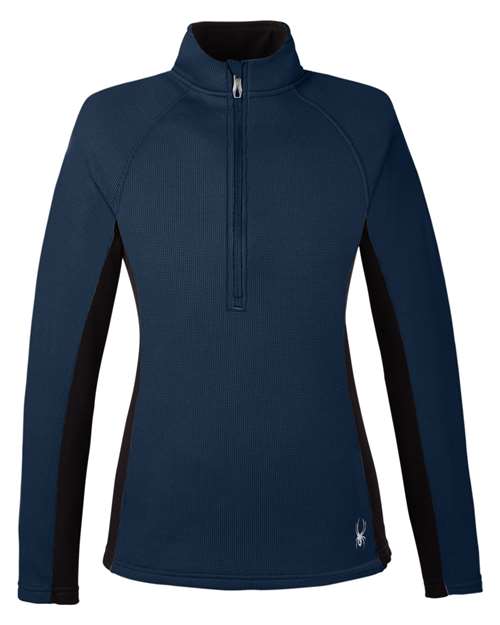 10  oz /yd² (US) 16.7 oz /L yd (CA) 100% polyester sweater knit bonded to fleece Modern fit Custom Spyder knit jacquard Brushed microfiber inner collar Princess seam details\ Stretch fleece panels at underarm and side body Branded Spyder zipper pull Concealed on seam front pockets Iconic Spyder bug on lower left hem